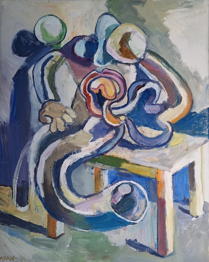 A creature takes shape on the canvas when I paint in front of a composition of props.