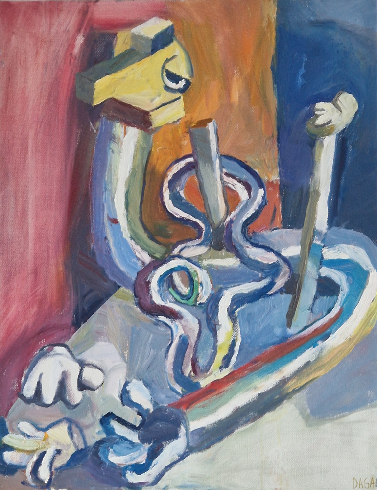 Kubism och konkret realism möts när objekten skapar en absurd figur.